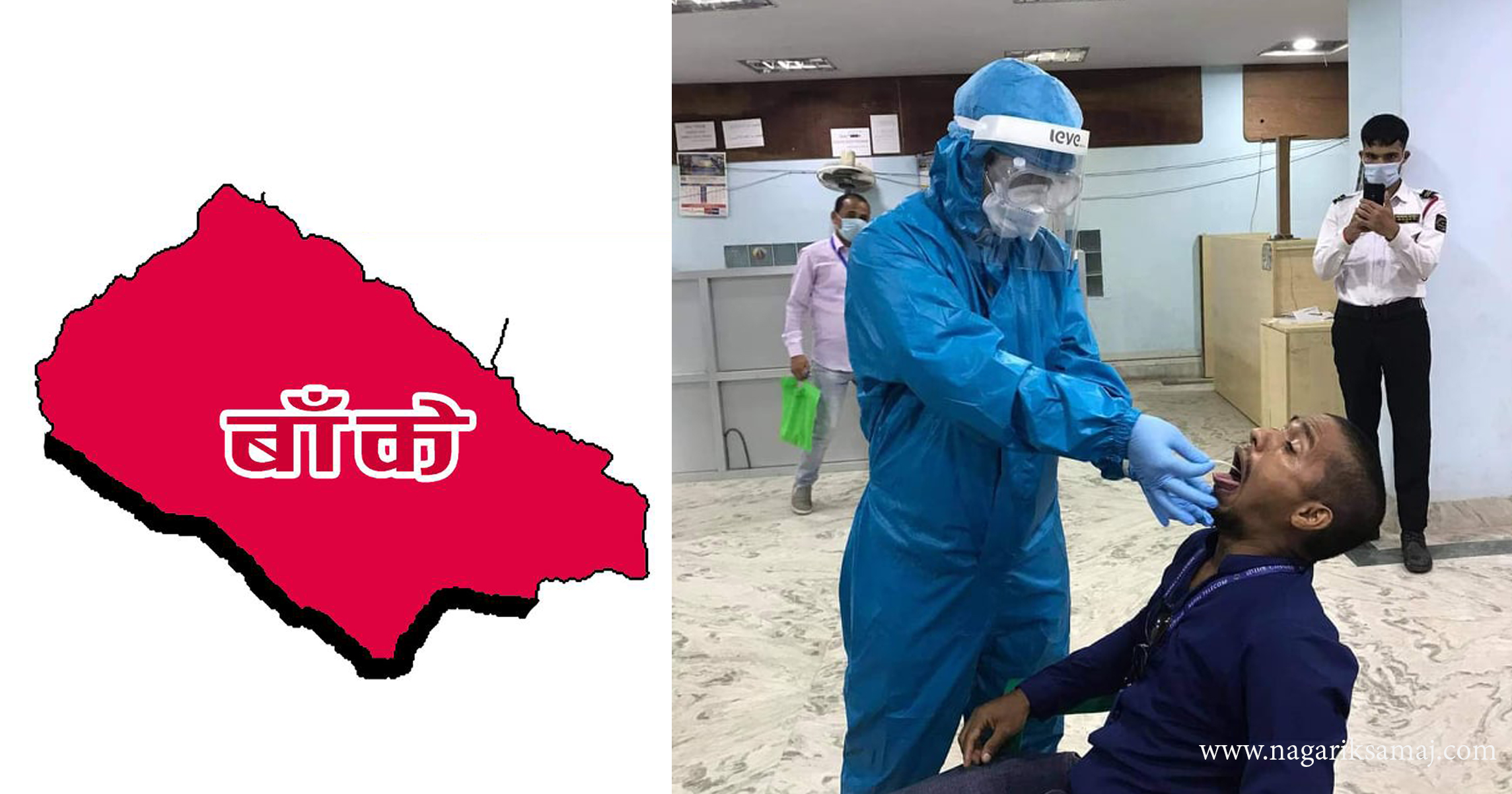 तस्बिर: केशब बिसी ,आज दुर संचार कार्यालय नेपालगंजका कर्मचारी तथा सुरक्षा गार्ड गरेर ६५ जनाको स्वाब लिइएको छ |