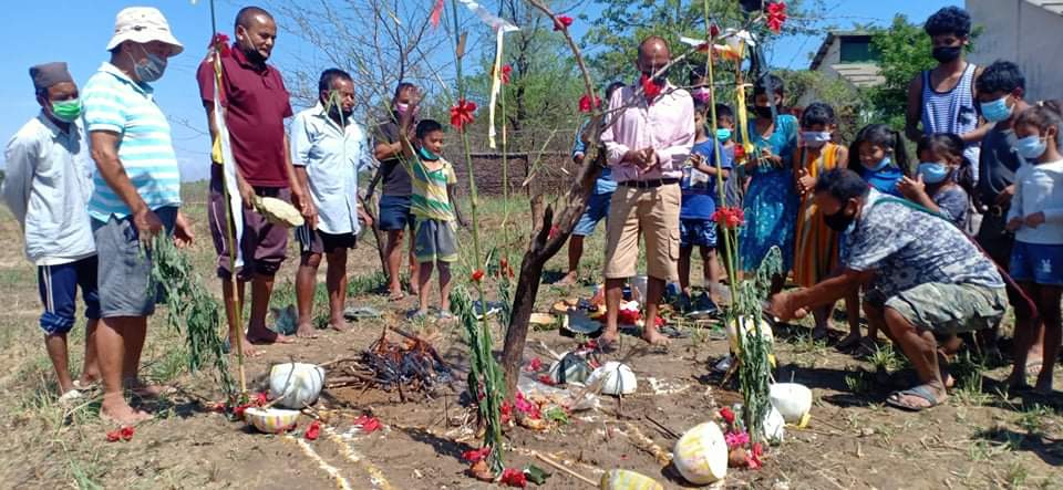 गाउँका अगुवा पूर्णबहादुर पुनको अगुवाईमा पूजा सम्पन्न भएको छ । गतवर्ष पनि कोरोना महामारी बढेपछि यसैगरी पूजा गरिएको थियोे ।