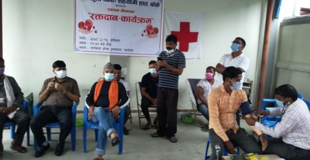 नेपालगन्ज, १५ जेष्ठ – कुर्मी (वर्मा) सहयोगी हात, बाँके नेपालगन्जले कोभिड १९ को महामारी, बिषम परिस्थितमा मास्क, सेनीटाइजरको प्रयोग गरी र सामाजिक दूरी कायम गरेर जेष्ठ १५ गते शनिवार रक्तदान कार्यक्रमको आयोजना गरिएको छ ।
