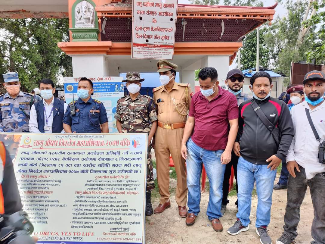जिल्ला प्रशासन कार्यालय बाँकेको अगुवाइमा जिल्ला प्रहरी कार्यालय, लाागु औषध व्यूरोलगायतको समन्वयमा नाकामा सचेतिकरण कार्यक्रम गरिएको हो ।