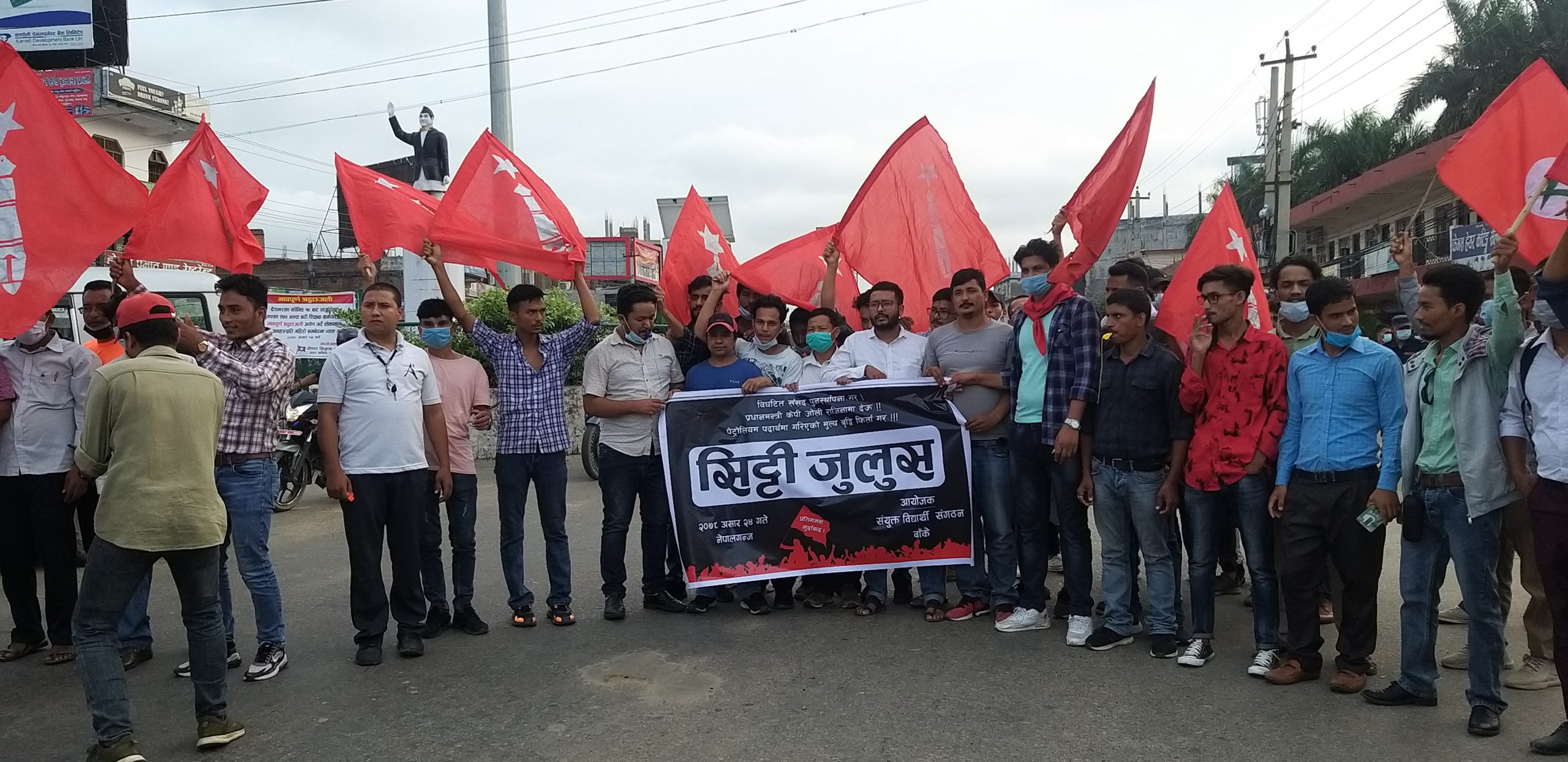 पेट्रोलियम पदार्थमा लगातार मूल्य वृद्धि गर्दै गएको केपि शर्मा ओली सरकारको बिरुद्धमा संयुक्त विद्यार्थी संगठनले नेपालगन्जमा सिट्टि जुलुसको आयोजना गरेको हो ।