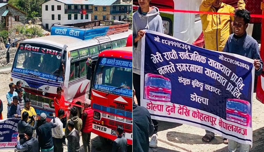डोल्पा-नेपालगञ्ज बस सेवा सञ्चालन भएसँगै डोल्पावासीकाे लामो समयदेखिको मनोकांक्षा पूरा भएकाे छ । बस सेवा शुरु भएसँगै डोल्पामा भेरि राप्ती सार्वजनिक यातायात प्रा.लि. र नमस्ते सगरमाथा यातायात प्रा.लि.ले संयुक्त टिकट बुकिङ काउन्टर समेत खोलेका छन् । यो दुई वटा यातायात प्रा.लि.ले अब डोल्पादेखि नेपालगञ्जसम्मका लागि दैनिक एउटा बस छुटाउने छन् ।