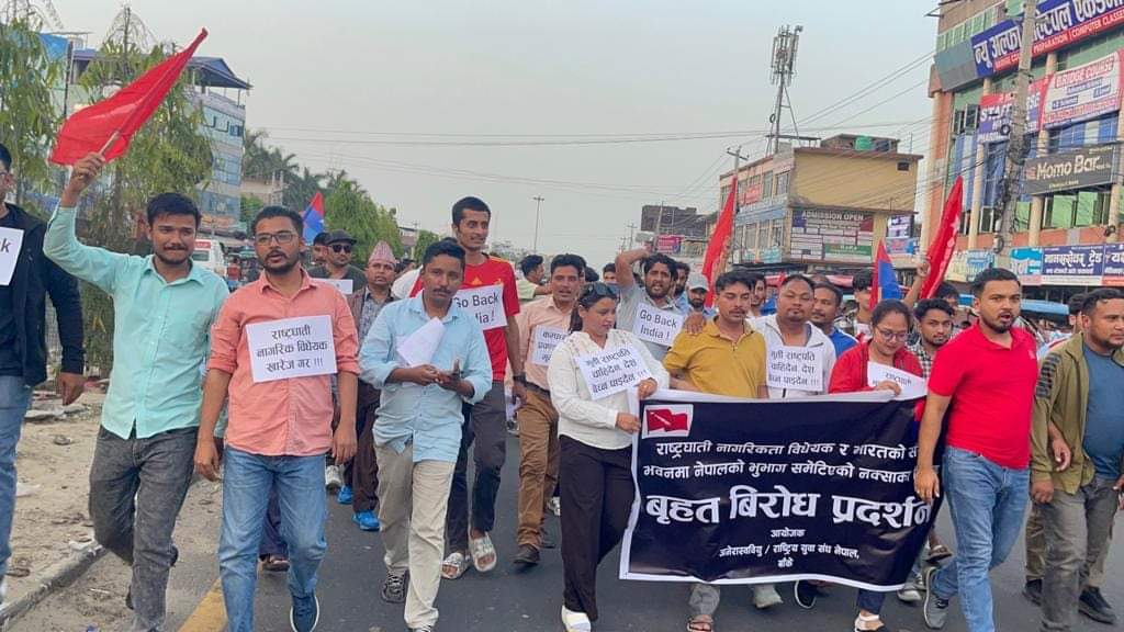 भारतले अखण्ड भारतको नक्सा भारतीय संसदमा राखेको र लामो समय विवादमा रहेको नागरिता विधेयक पारित गरिएको प्रती दुई संगठनले नेपालगन्जमा र्याली सहित बिरोध प्रदर्शन गरेको हो ।